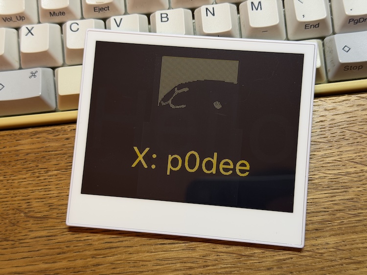 外部で交流する際に、よく主催者から名札を手渡されてプロフィールを手書きするケースが一般的だが、書き込める内容に限界があるのと、字が汚くて読みづらいので困っていた。場合によってはその名札が粘着式であったりすると、いつの間にか剥がれてしまうことも多々あった。そんな時に、この名刺大のカード型で薄く、ランヤードで下げたカードケースに収まるこのデバイスはとても魅力的だった。