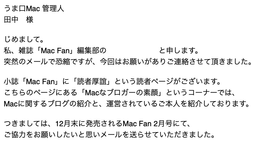 そんなある時、唐突に「Mac Fan」を名乗る人物から一通のメールが届いたのだった。